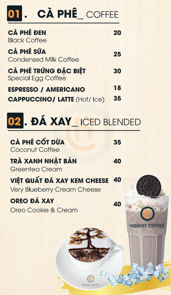 HONEST COFFEE | CÀ PHÊ NGON CỦ CHI Menu